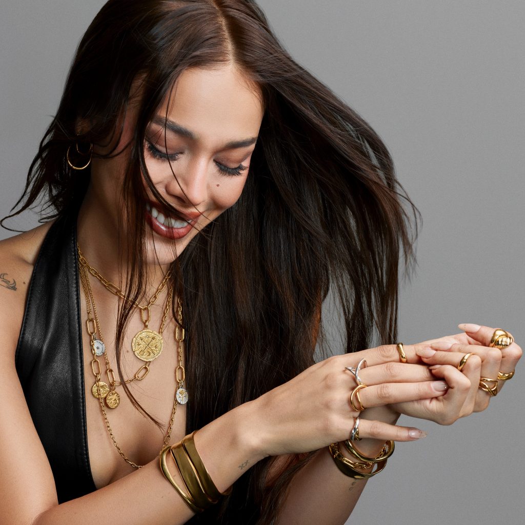 Me identifico con Pandora ya que es una marca que promueve la libertad de ser tú misma. Me gusta que cada pieza tiene un significado y una intención que uno le entrega con la historia que le pertenece. Esta colaboración se siente muy natural y llega en un momento muy especial, donde me siento más segura, más fuerte y más auténtica que nunca.