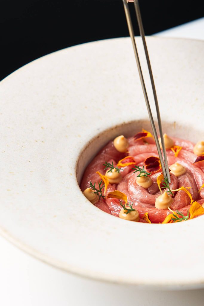 Su paso por Tickets y El Celler de Can Roca ha sido clave. Hoy, su estilo apuesta por bocados intensos y bien definidos.
