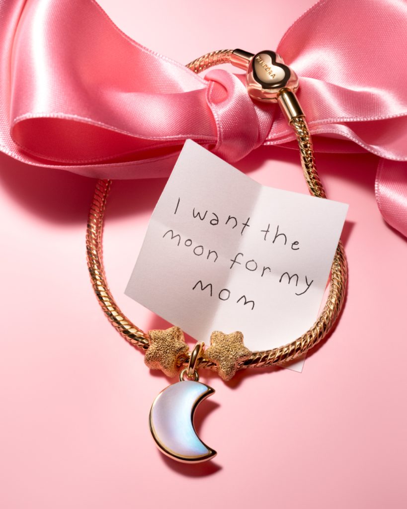 Pandora Moments se inspira en el cielo nocturno. Sus nuevos charms lunares están elaborados en cristal iridiscente, un material que captura la luz con un efecto poético que evoca recuerdos suspendidos en el tiempo.