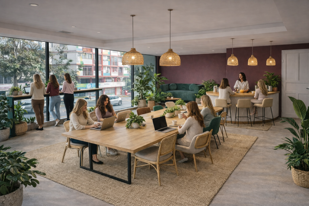 Peachy Studio surge a partir de una vivencia concreta. Al mudarse a Panamá y comenzar a trabajar de forma remota, su fundadora identificó la falta de espacios donde conectar de manera real con otras mujeres.